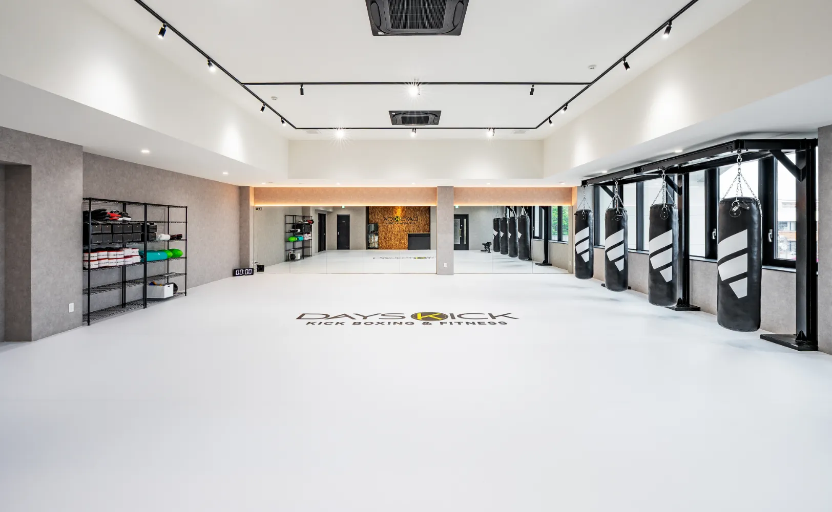 DAYS KICKは、清潔感のある明るい空間で“戦わないキックボクシング” をコンセプトにした、初心者・未経験の方でも通いやすいキックフィットネスジムを目指しています。